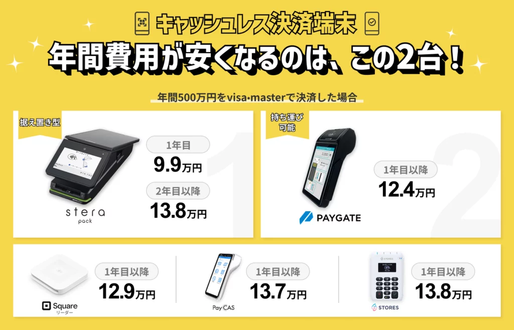 【決済手数料】キャッシュレス決済端末の​費用を​解説!​最安は​stera packと​PAYGATE!